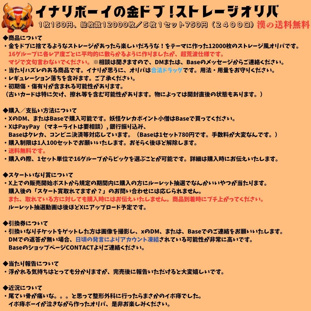 ・低額オリパですが、そこそこ辛口となっています。どうかご無理のない範囲でご購入いただければと思います。